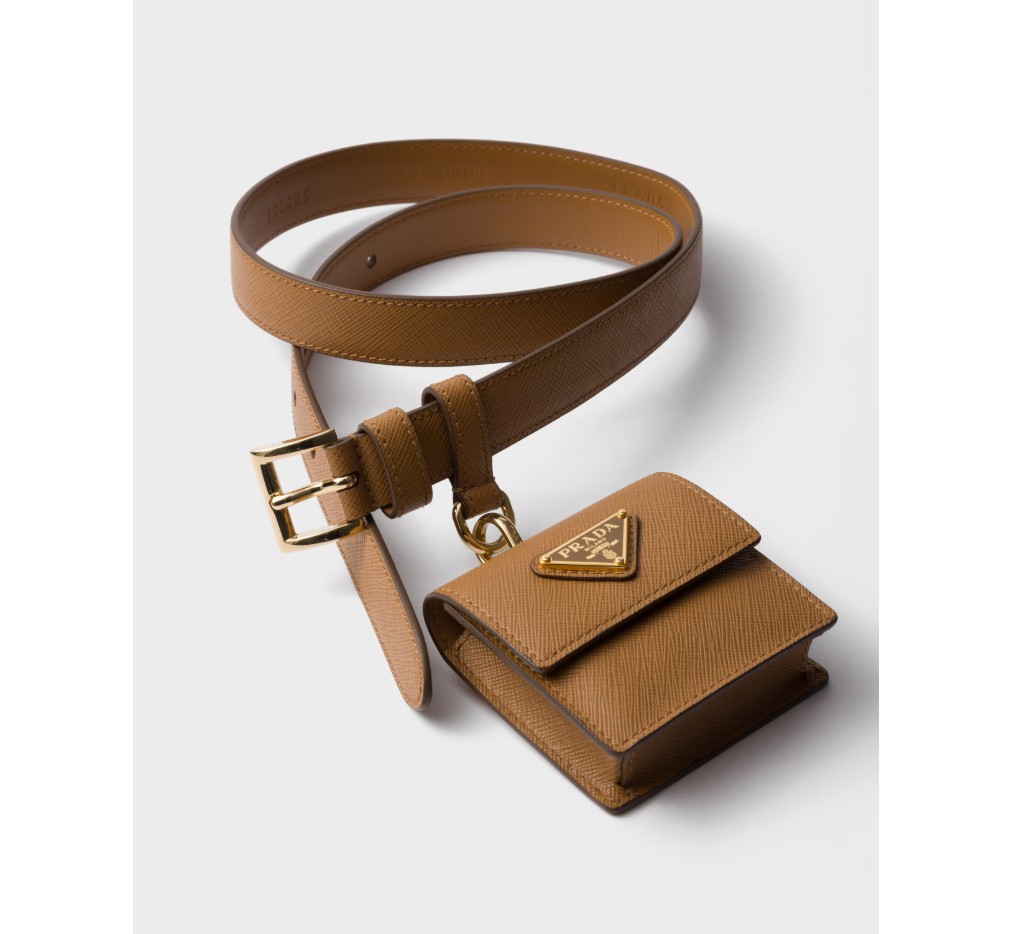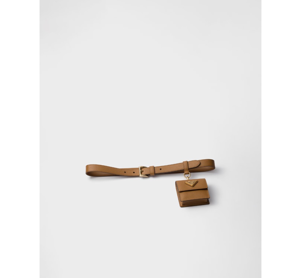 사피아노 가죽 소재의 세련되고 다재다능한 벨트는 세련된 디자인에 탈부착 가능한 미니 파우치가 더해져 더욱 풍성한 매력을 선사합니다. 에나멜 처리된 메탈 삼각형 로고는 시그니처 감성을 더하며, 현대적인 우아함을 더합니다.