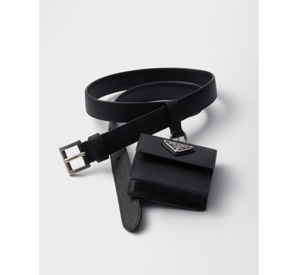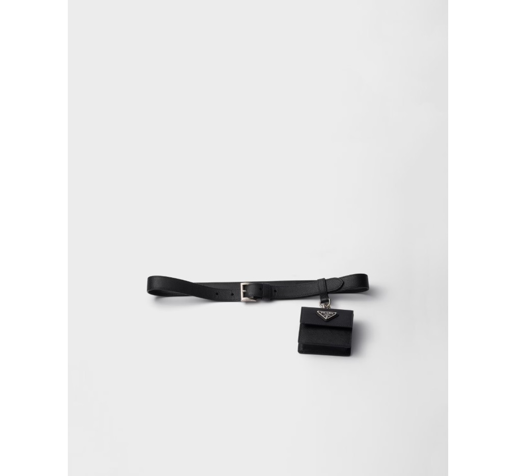 사피아노 가죽 소재의 세련되고 다재다능한 벨트는 세련된 디자인에 탈부착 가능한 미니 파우치가 더해져 더욱 풍성한 매력을 선사합니다. 에나멜 처리된 메탈 삼각형 로고는 시그니처 감성을 더하며, 현대적인 우아함을 더합니다.