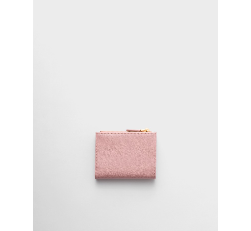 에나멜 메탈 삼각형 로고가 새겨진 사피아노 가죽 지갑은 세련되고 우아한 분위기를 자아냅니다. 깔끔한 라인의 이 지갑은 지퍼 동전 수납공간, 지폐 수납공간, 카드 슬롯을 갖추고 있습니다.