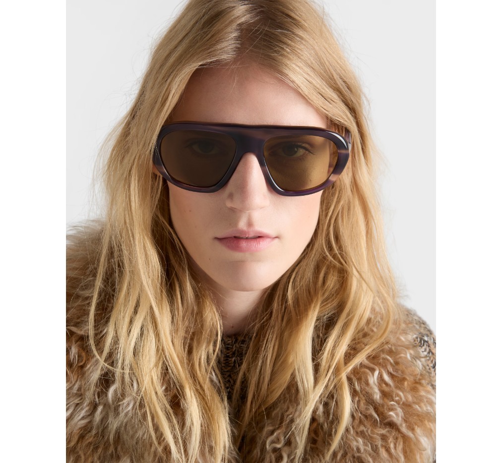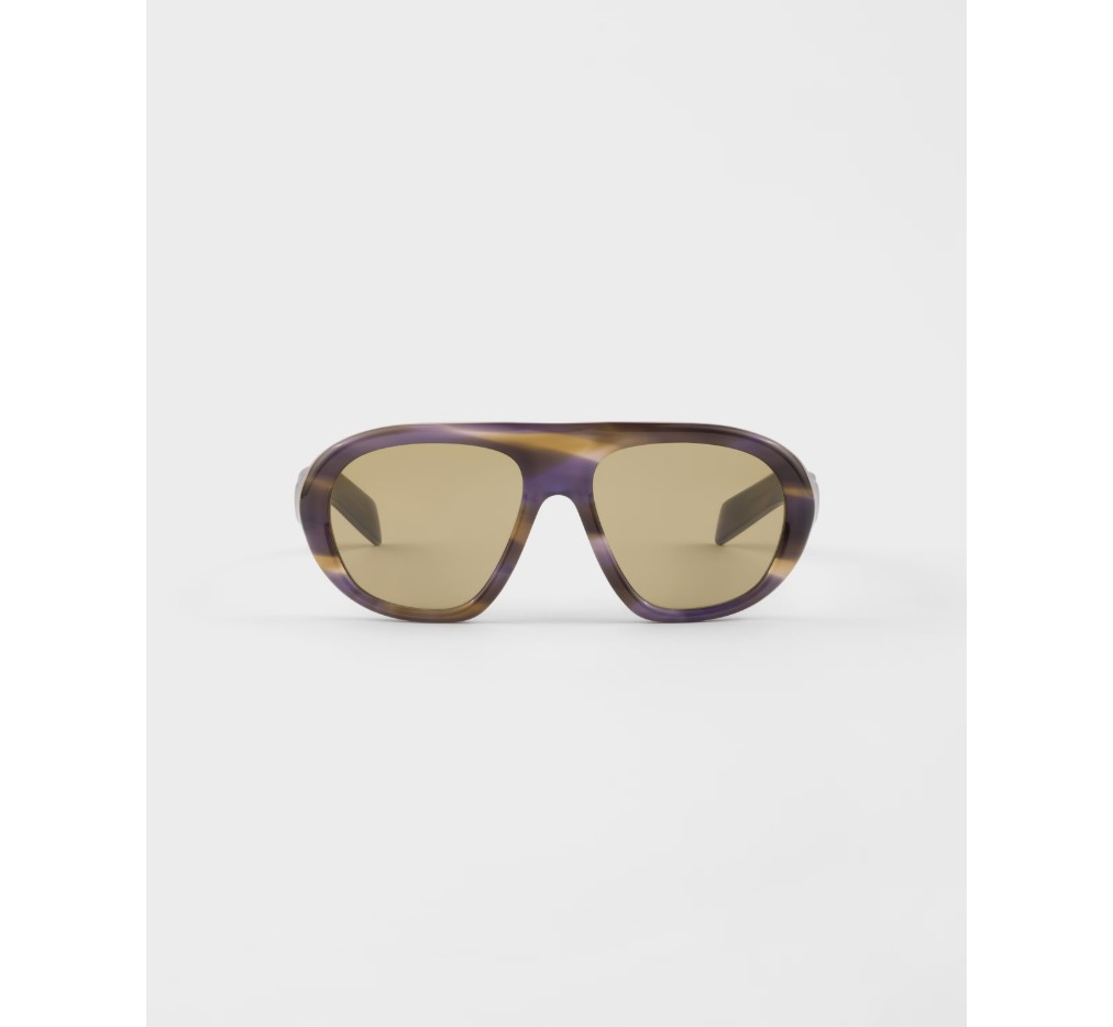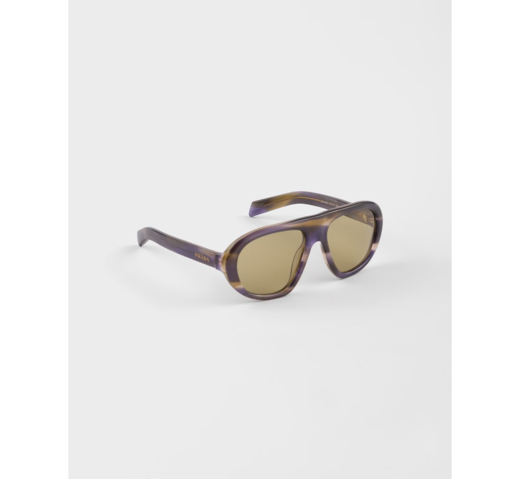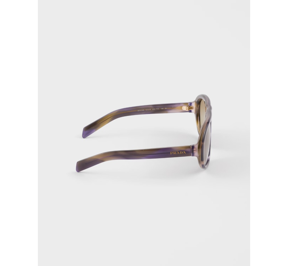오버사이즈 디자인의 아세테이트 선글라스입니다. 프레임은 오버사이즈 파일럿 실루엣과 라지 볼륨감을 특징으로 하여 현대적이고 여성스러운 느낌을 선사합니다. 곡선형 템플에는 에나멜 처리된 프라다 로고가 장식되어 있습니다.