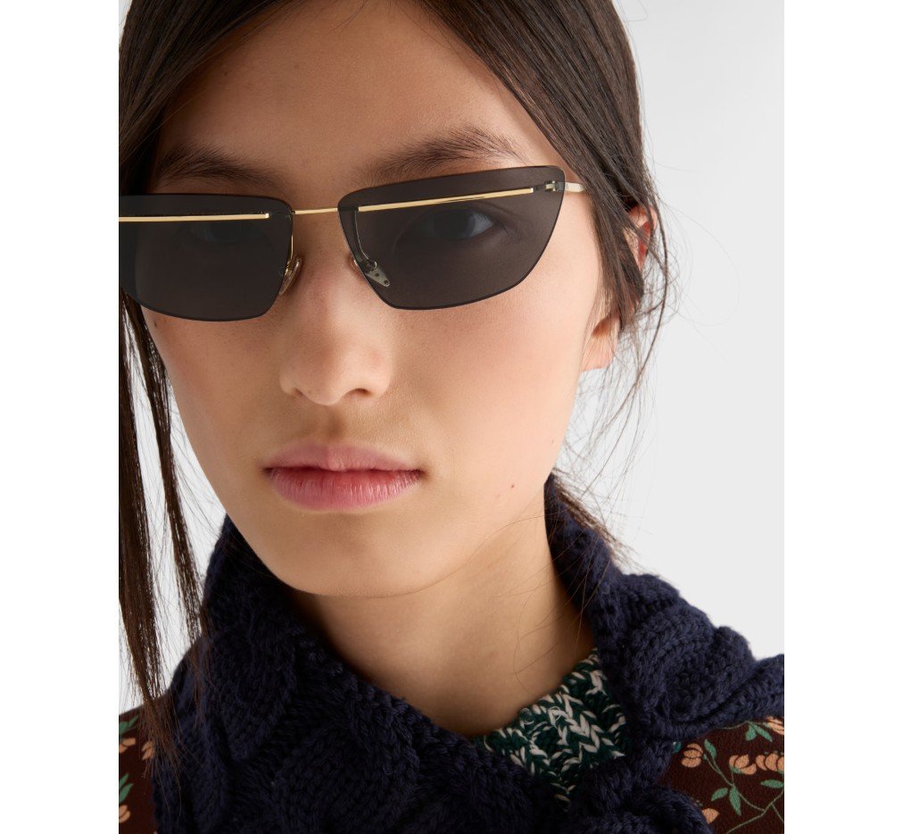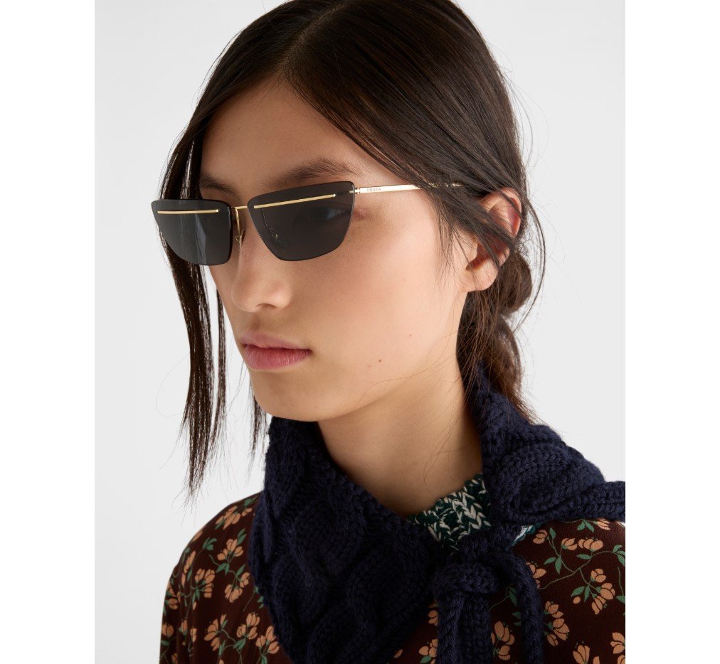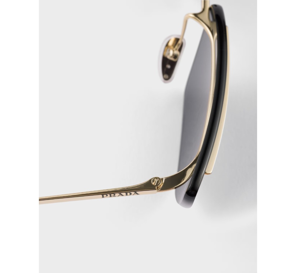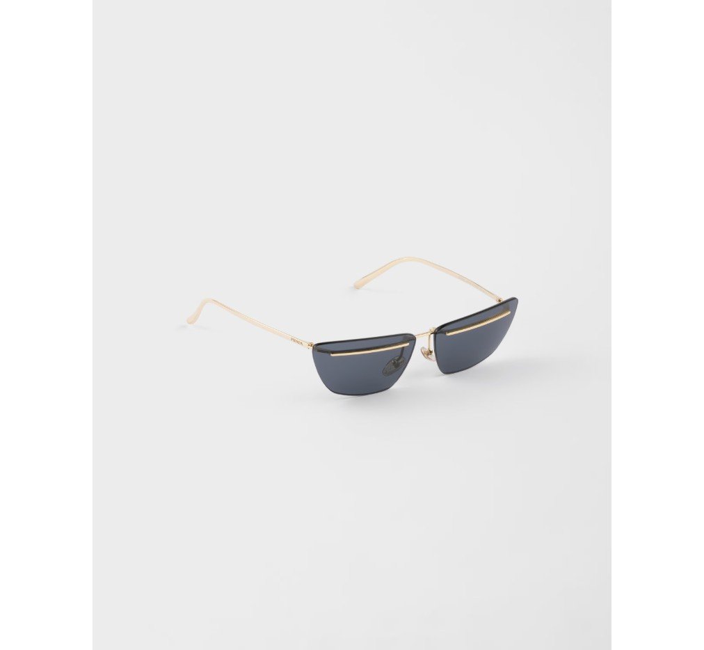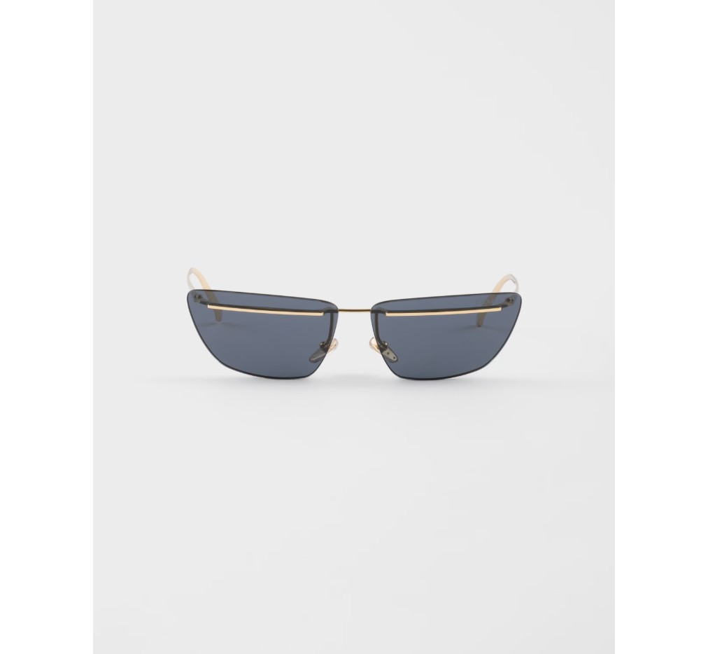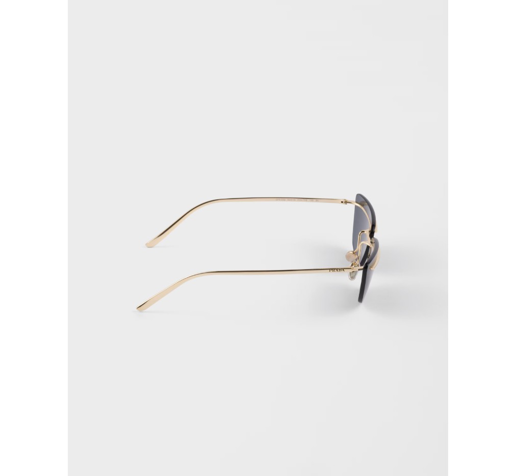 초경량 실루엣의 메탈 선글라스입니다. 메탈 프레임에 일체형 무테 렌즈가 적용되어 깔끔하고 세련된 분위기를 자아냅니다. 템플에는 프라다 레터링 로고가 섬세하게 새겨져 있습니다.