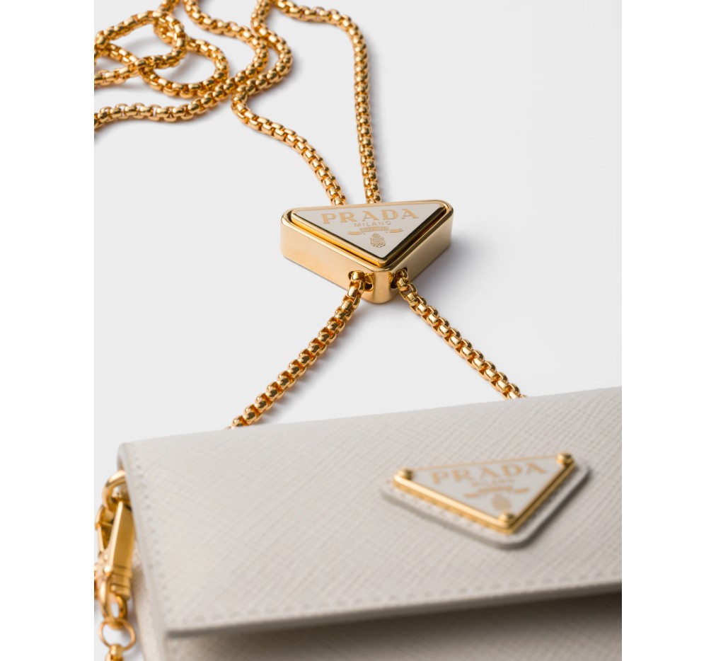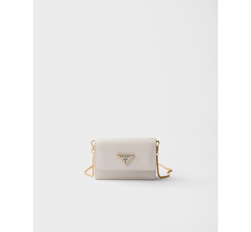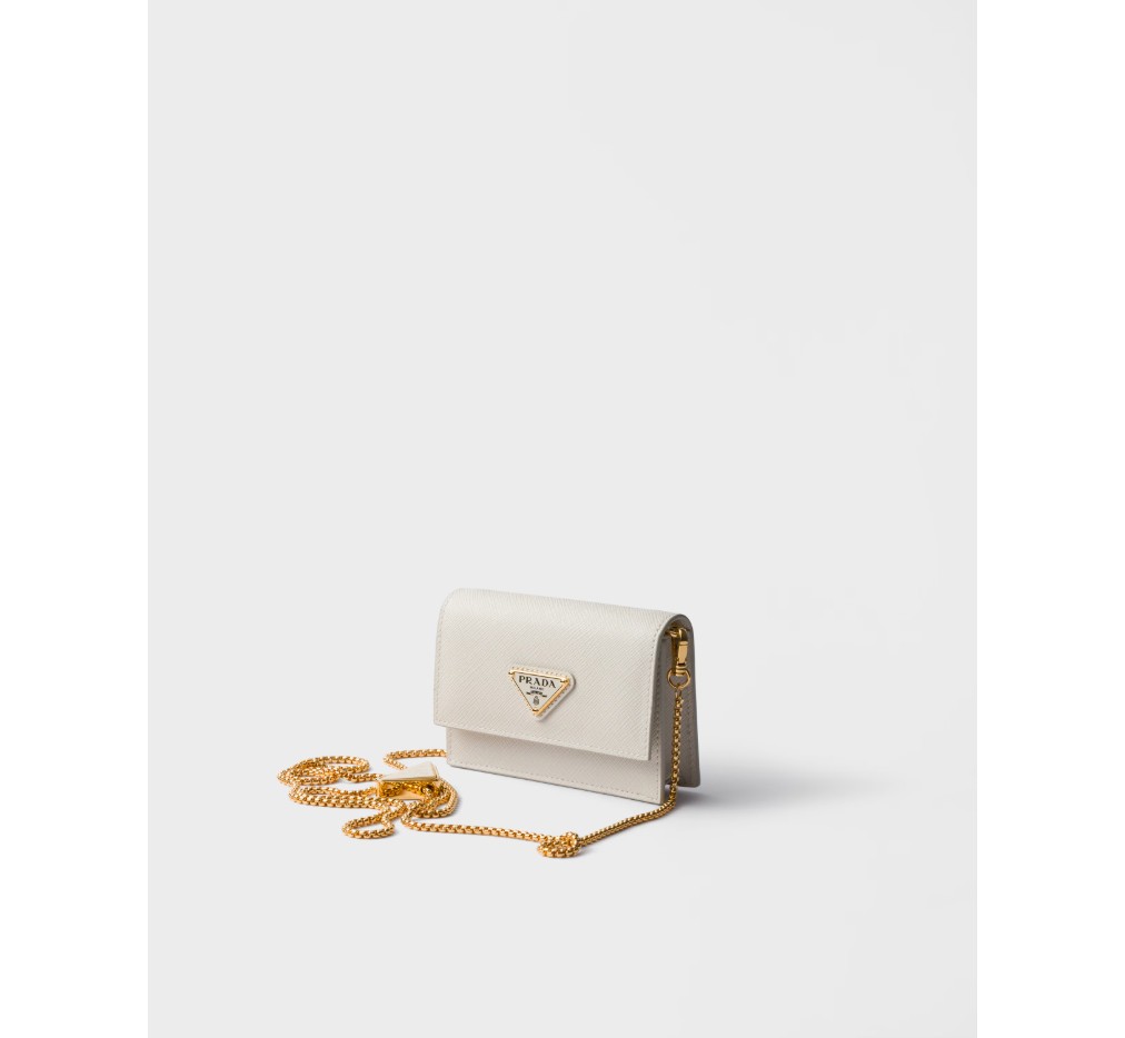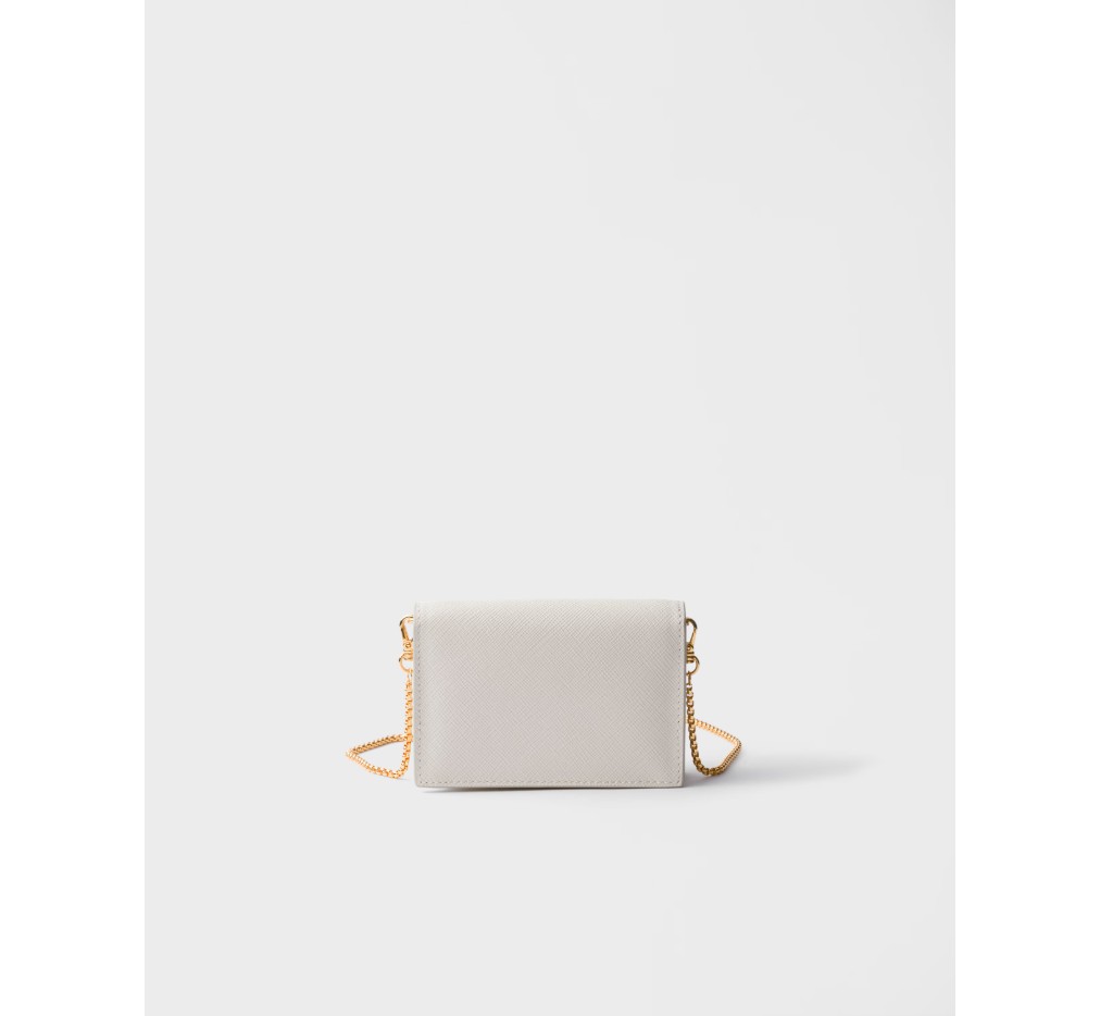 프라다 어깨 스트랩이 달린 사피아노 가죽 카드 홀더 분필 흰색 1MR034_QHH_F0K74