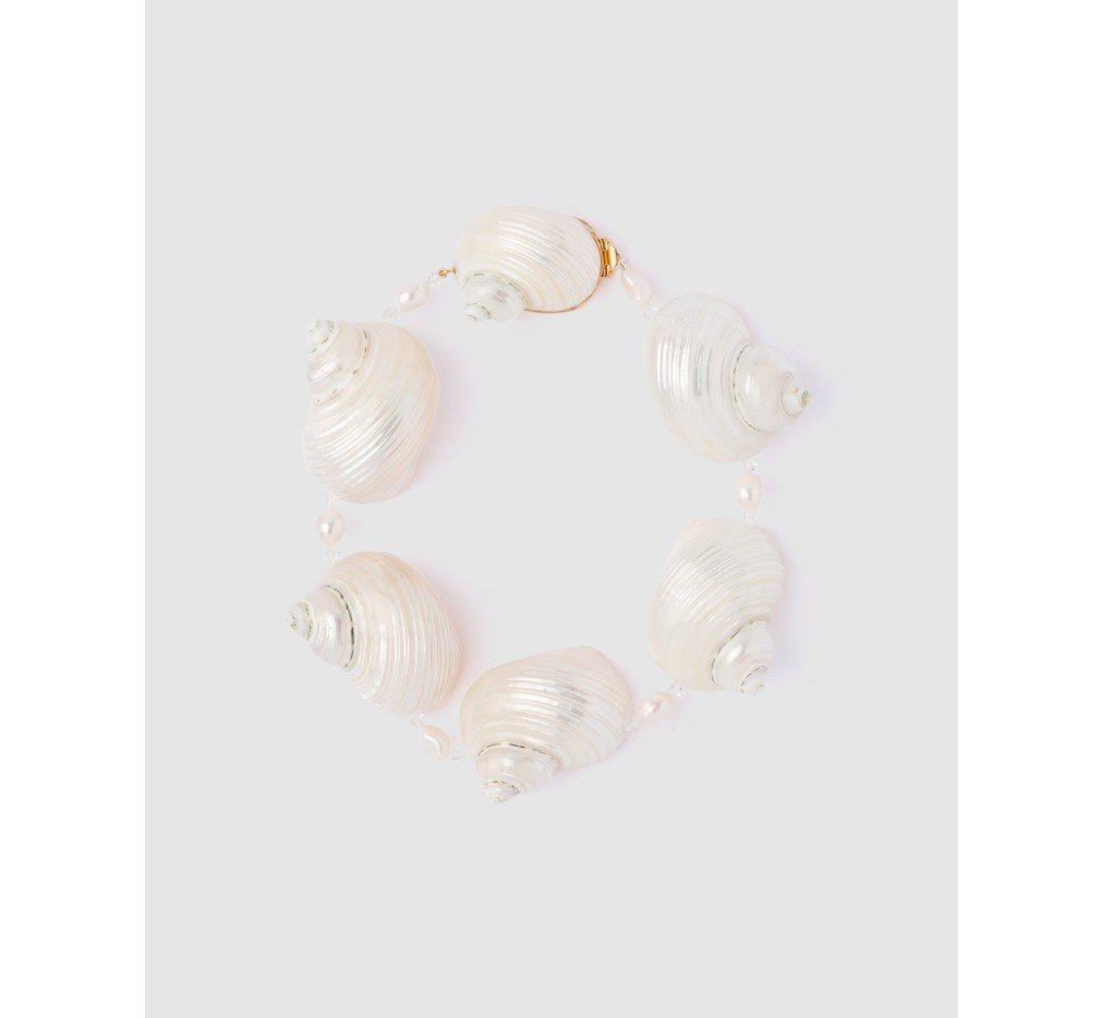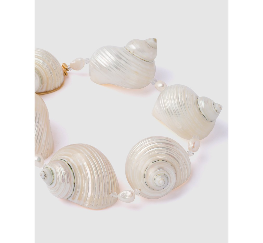 진주와 조개껍질이 번갈아 장식된 은색 초커 목걸이입니다. 여름을 떠올리게 하는 우아한 디자인입니다. – 제품 코드: 1JC724_2DIZ_F0164