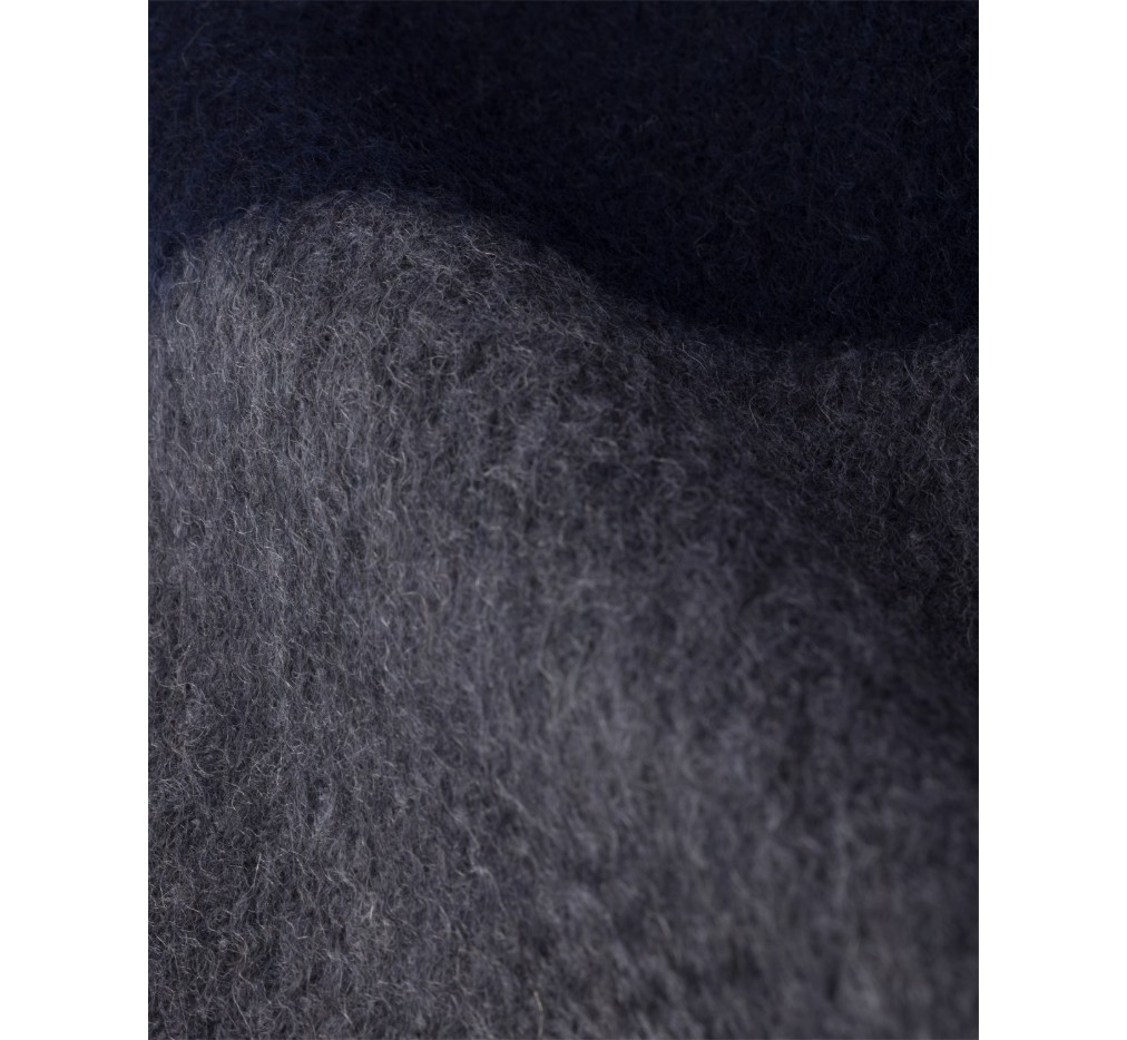캐시미어 소재가 당신을 가볍게 감싸고, 프린지와 에나멜 처리된 금속 삼각형 로고가 본능적이고 개인적인 우아함의 흔적처럼 움직임을 연출합니다. – 제품 코드: 2FS117_2HJ9_F0FGN