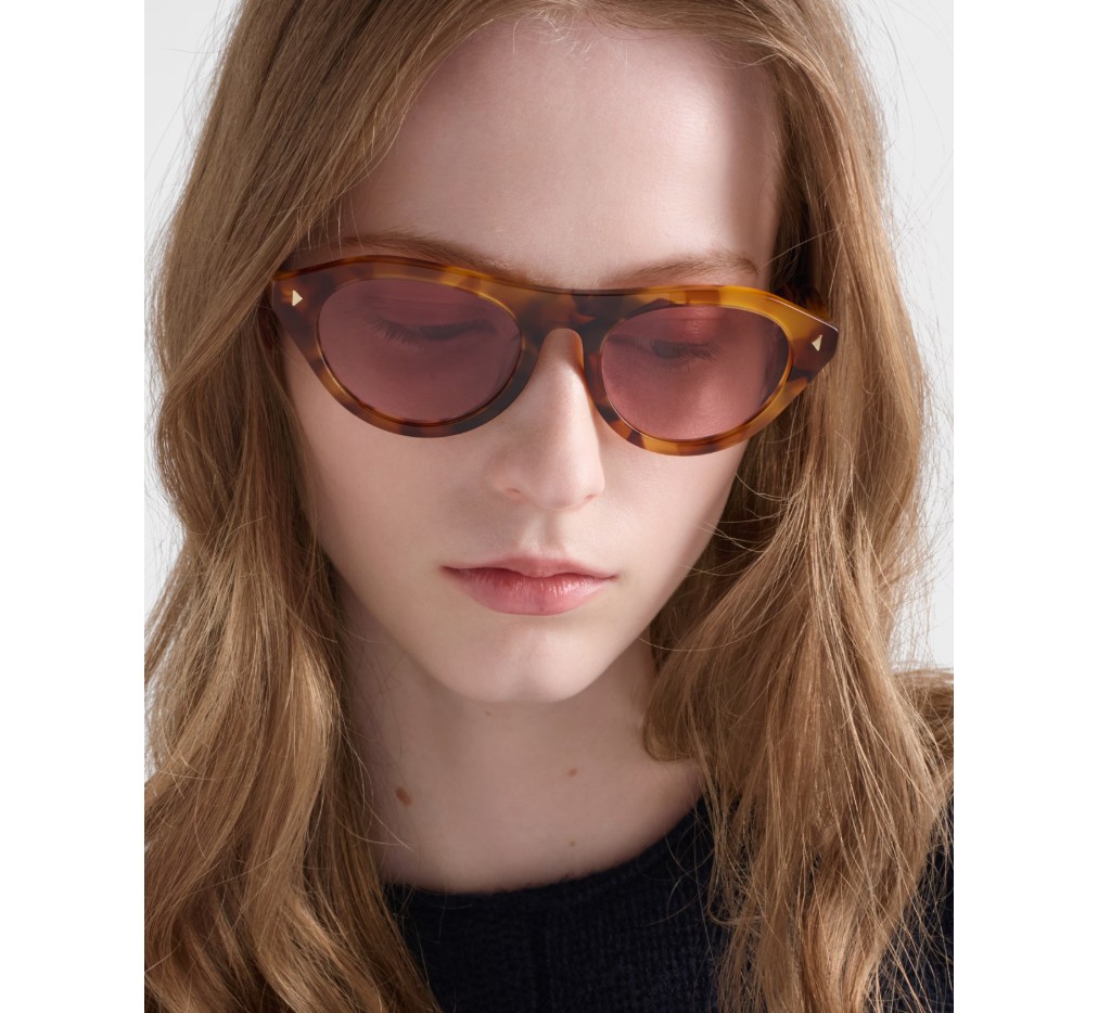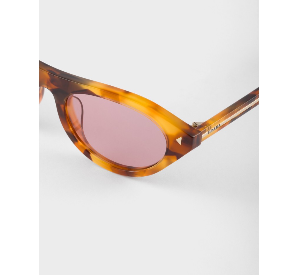 세련된 디자인과 섬세한 디테일이 조화를 이루는 새로운 프라다 선글라스입니다. 아세테이트 프레임 앞면에는 세련된 삼각형 리벳이, 템플에는 프라다 레터링 로고가 새겨진 아이코닉한 메탈 장식이 돋보입니다.