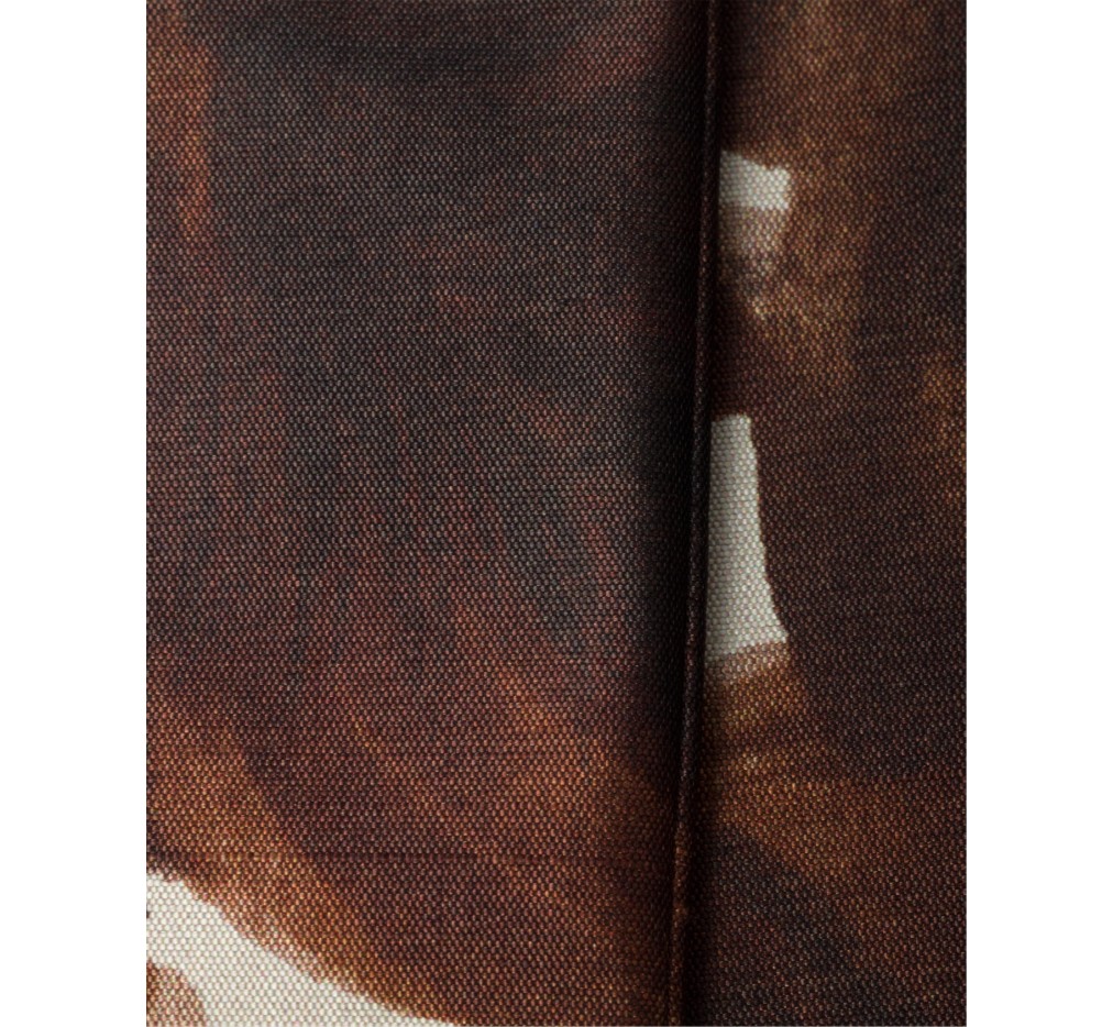 추상적인 꽃무늬 프린트가 세련된 실크 산둥 스키니 스카프를 더욱 돋보이게 하며, 로고 문자가 장식되어 있습니다.