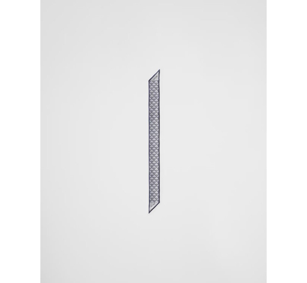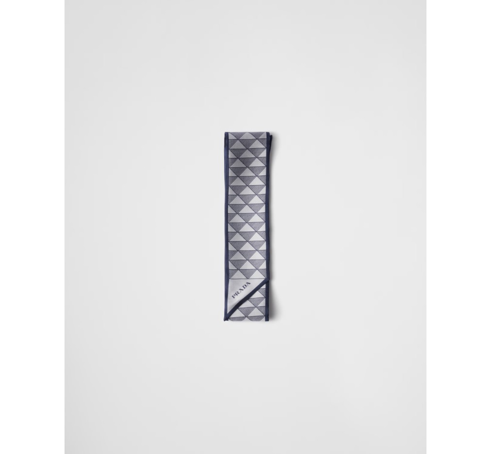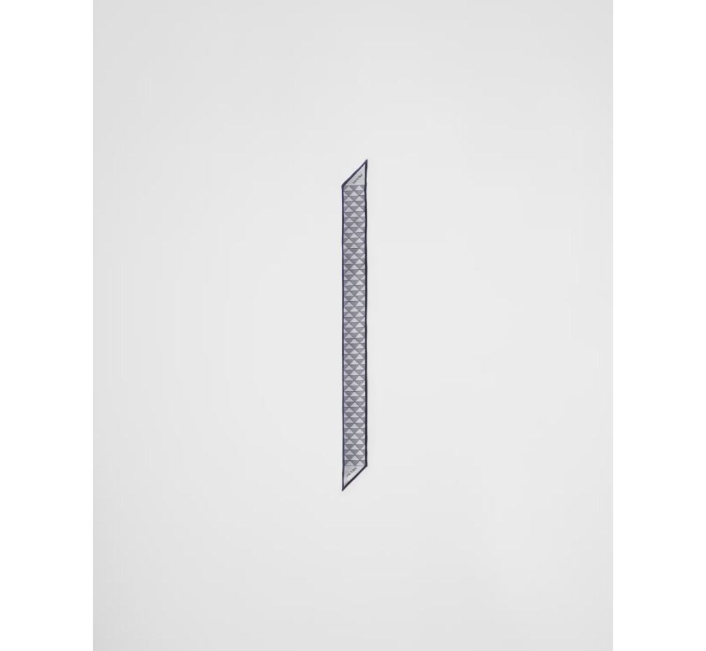 프라다의 상징적인 삼각형을 기하학적이고 현대적인 모티브로 표현한 심볼 프린트가 세련된 실크 스키니 스카프를 장식합니다.
