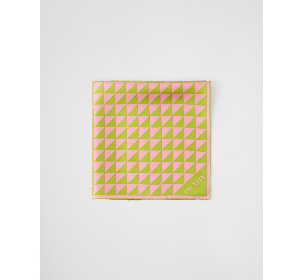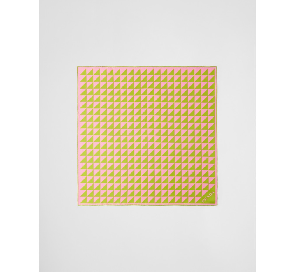 1913년부터 프라다의 상징적인 로고였던 삼각형은 항상 새로운 방식으로 재해석되었으며, 이 능직 스카프의 그래픽 패턴에서 찾아볼 수 있습니다.