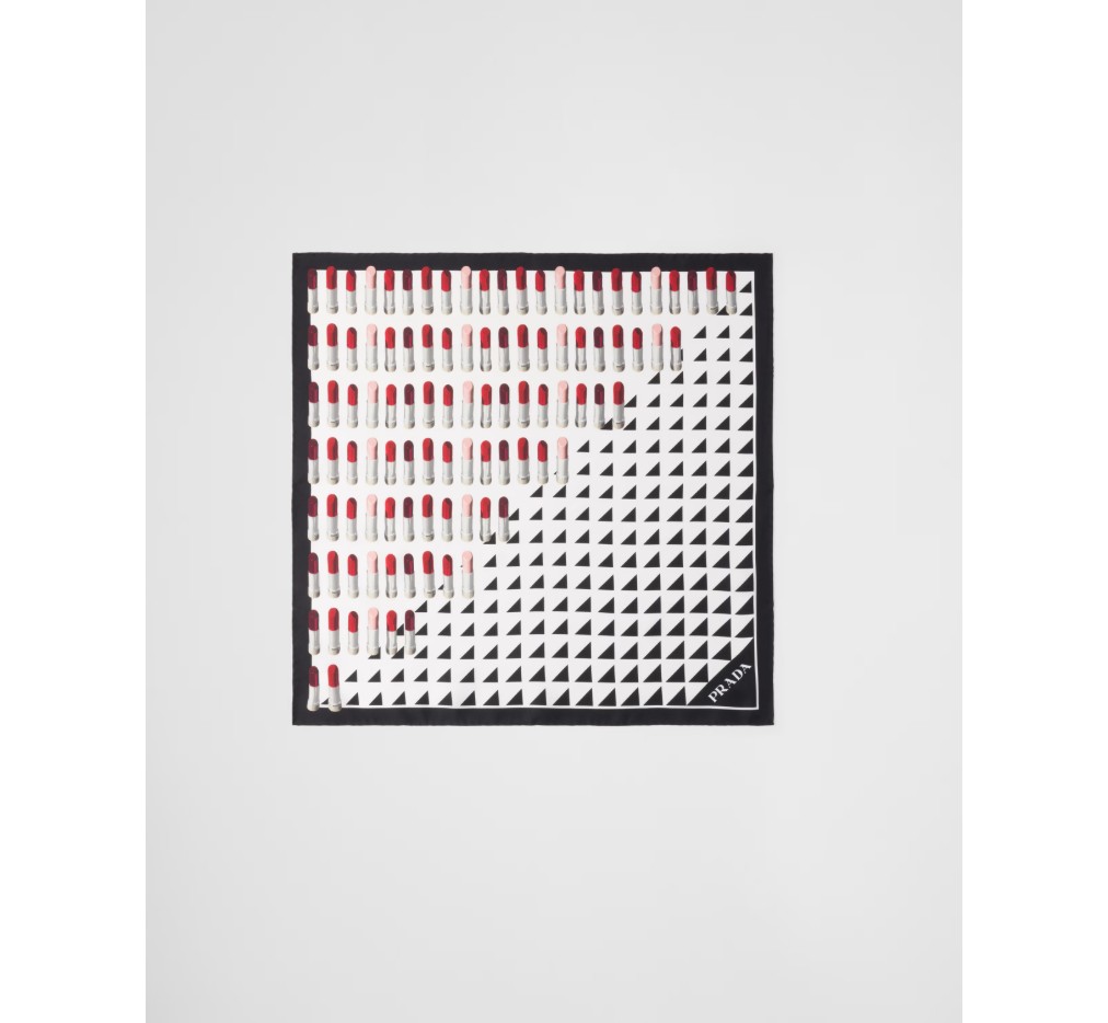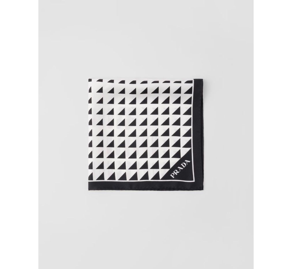 프라다 코드를 완벽하게 합성한 이 실크 스카프는 상징적이고 세련된 아카이브 프린트와 결합된 음영 처리된 기하학적 모티브로 생동감을 더했습니다.