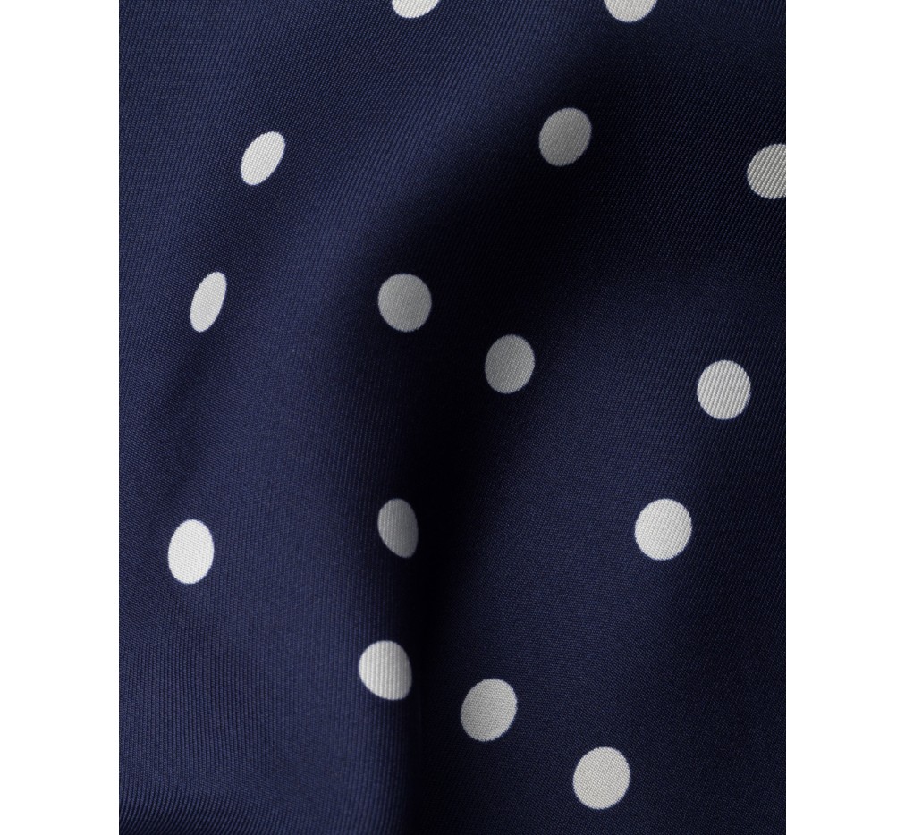 세련된 물방울 무늬가 돋보이는 이 고급 실크 트윌 스카프에는 대조적인 색상의 로고 글자가 장식되어 있습니다.