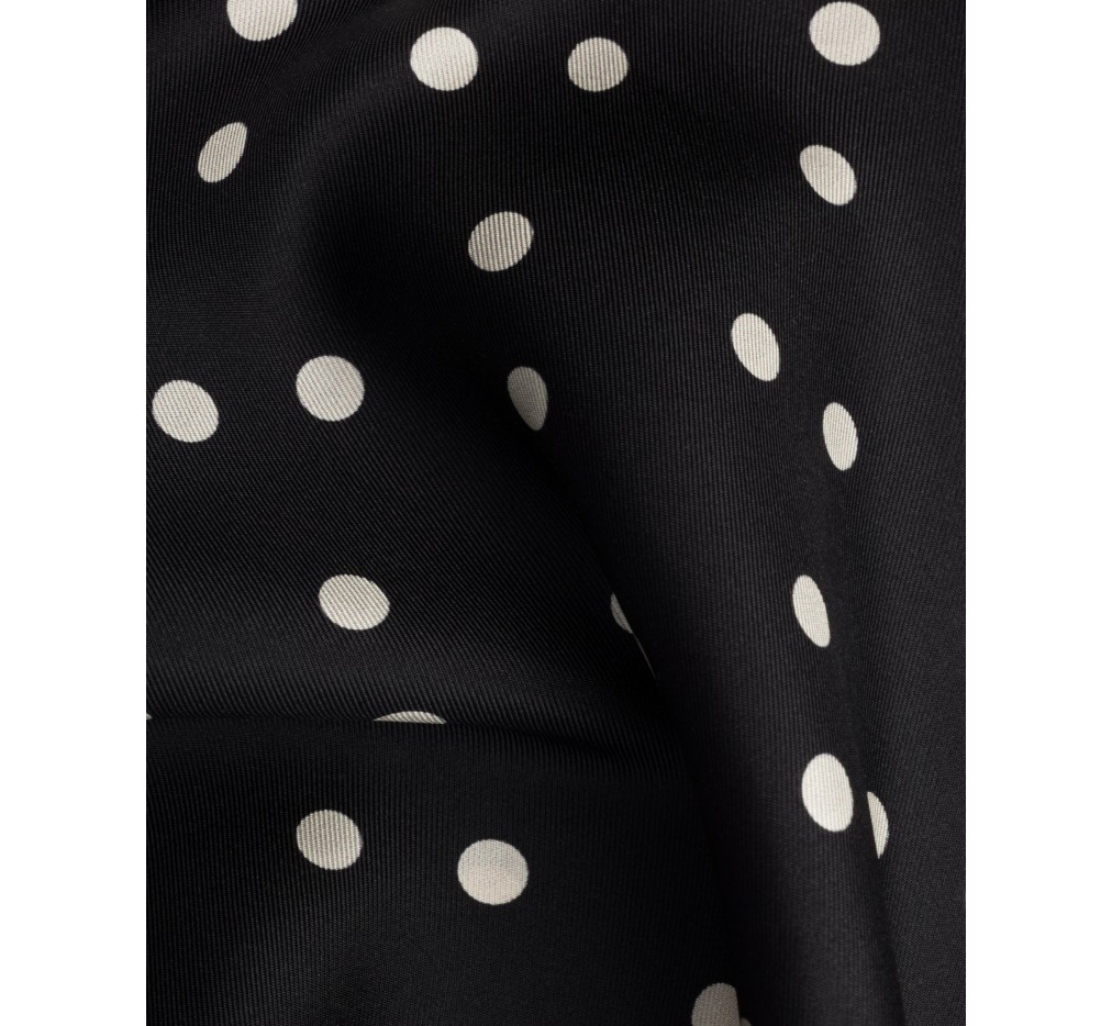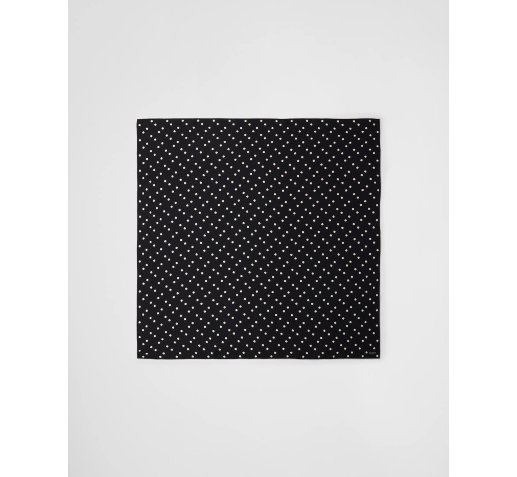 세련된 물방울 무늬가 돋보이는 이 고급 실크 트윌 스카프에는 대조적인 색상의 로고 글자가 장식되어 있습니다.