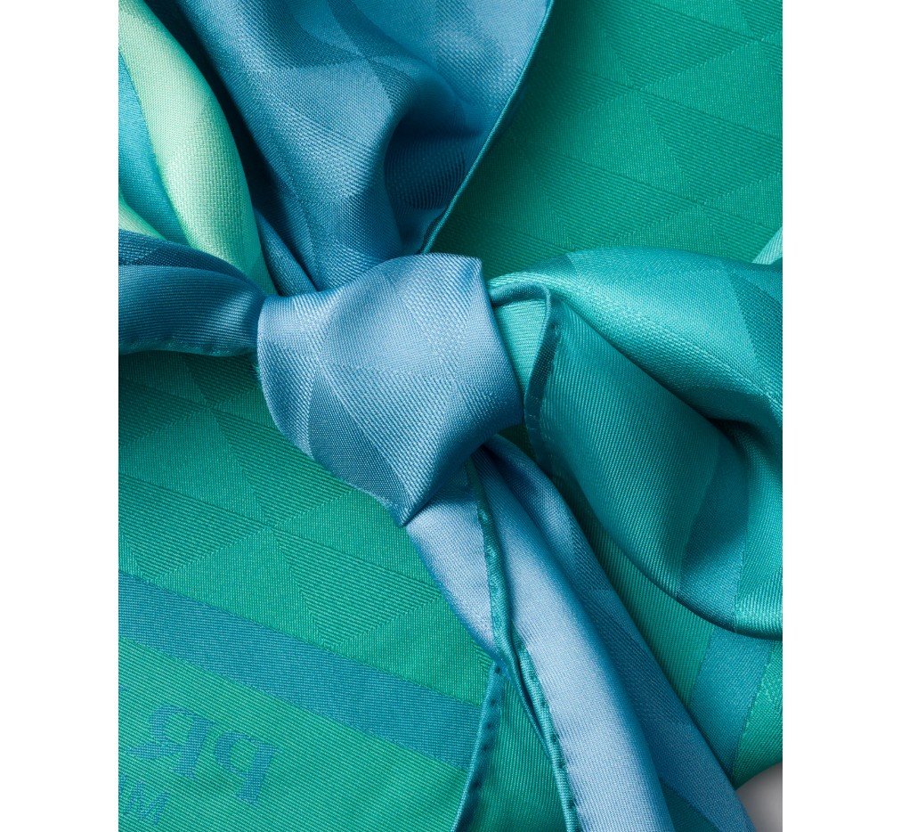 그라데이션 효과로 재해석된 심볼 프린트가 세련된 실크 트윌 홀터 탑을 더욱 돋보이게 합니다.