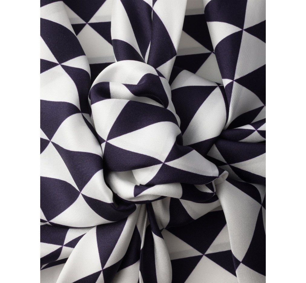 상징적인 심볼 프린트가 세련된 실크 트윌 홀터 탑을 더욱 돋보이게 합니다.